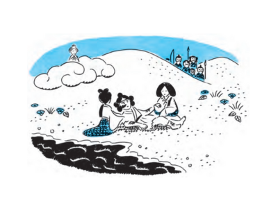 オオアナムヂノカミが死んでしまったことを知った、オオアナムヂノカミの母神であるサシクニワカヒメ(刺国若比売)はたいそう悲しみました。